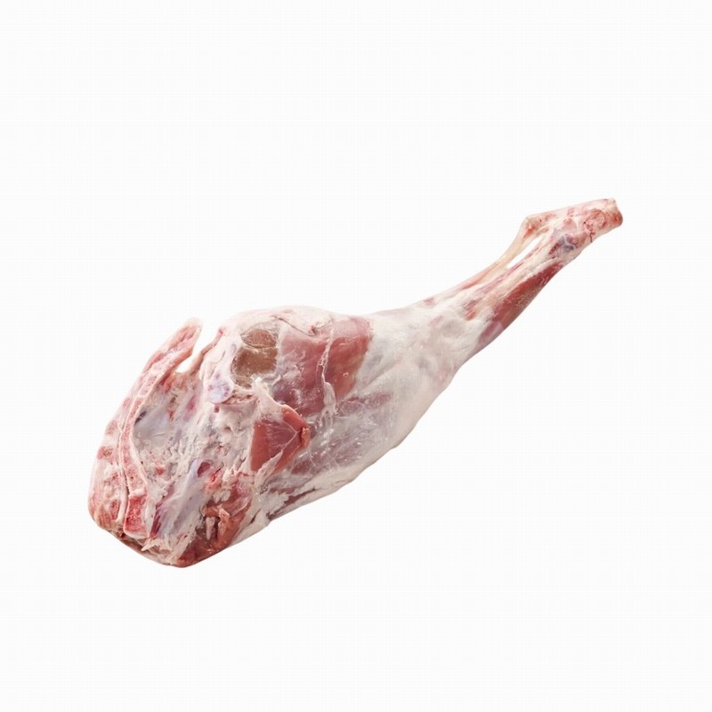 The leg bone-in is prepared by the removal of the chump using a right angle cut at the back of the hip bone and the shank is usually tipped.